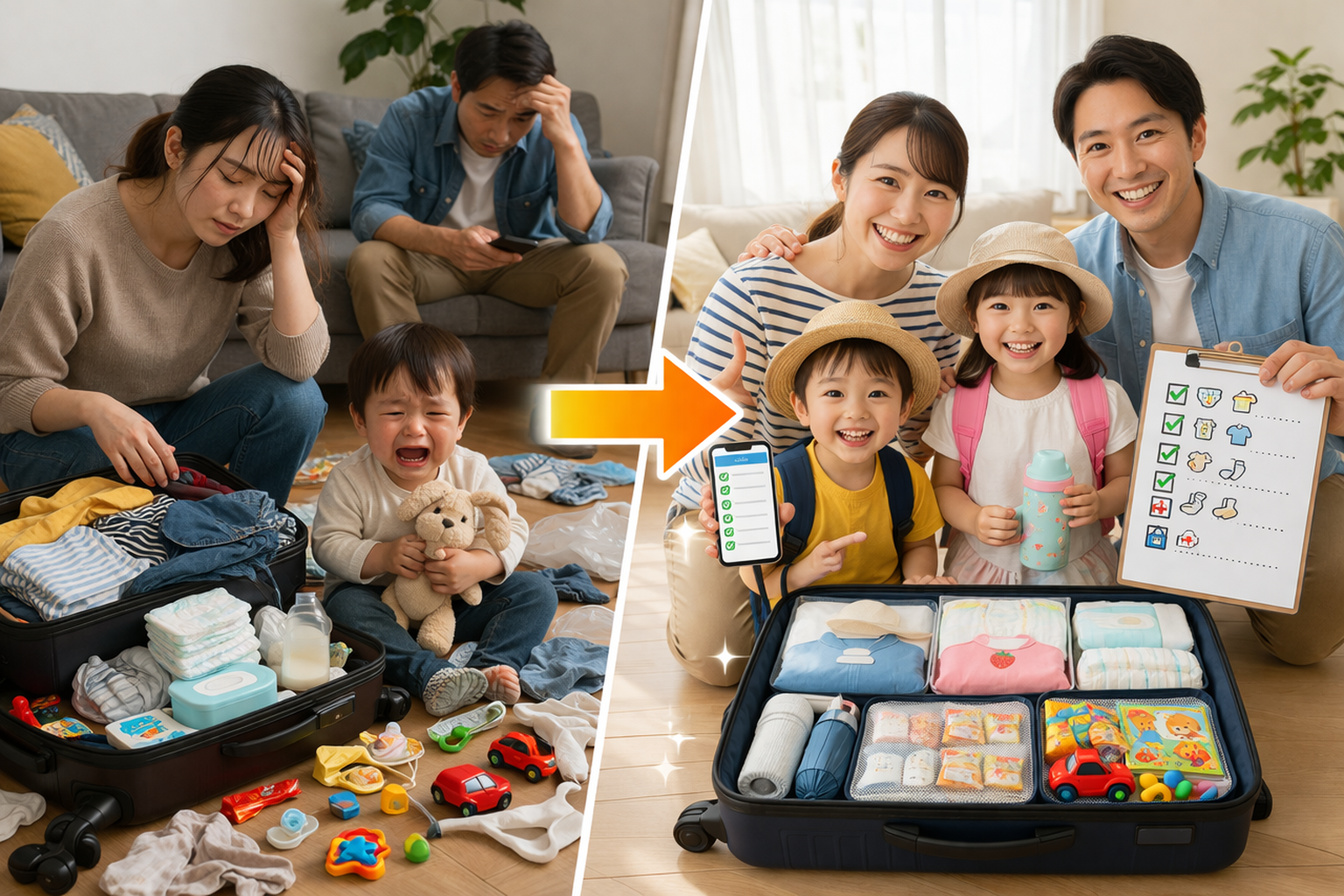 共働き家庭の旅行準備は、ちょっとした工夫で大幅に時短できます。