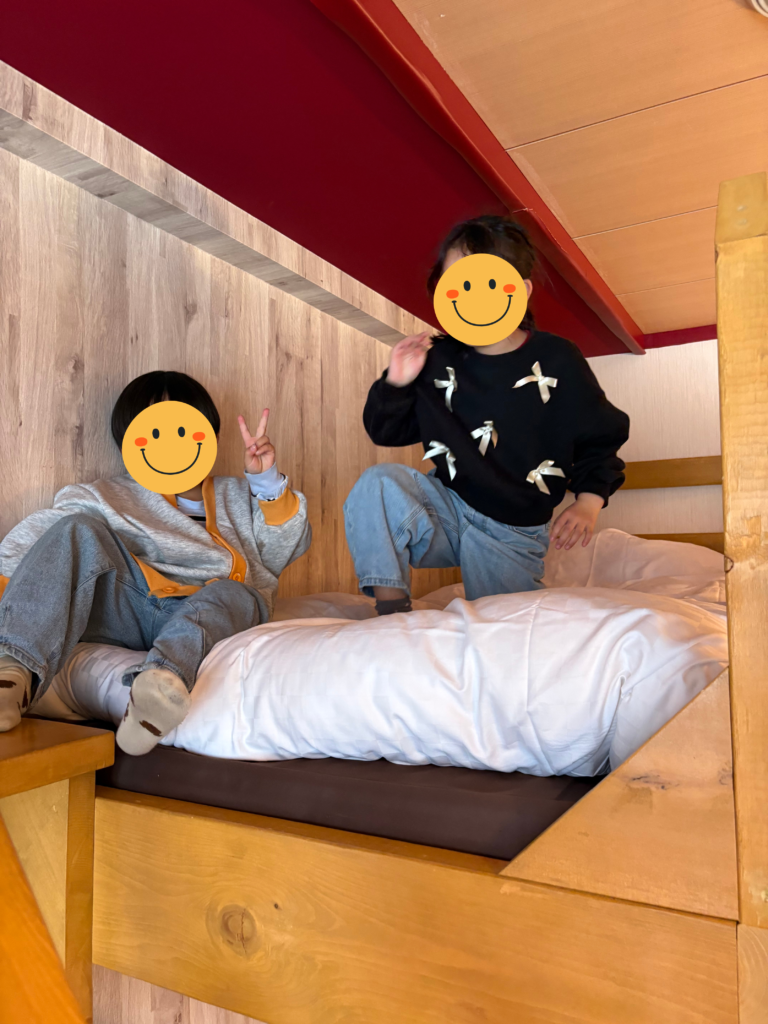 初めての2段ベッドで大はしゃぎ、ここは子どもの秘密基地!