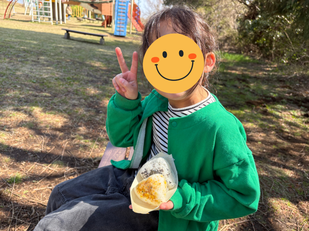 →自分で握ったおにぎりを小室山の公園で美味しく食べました